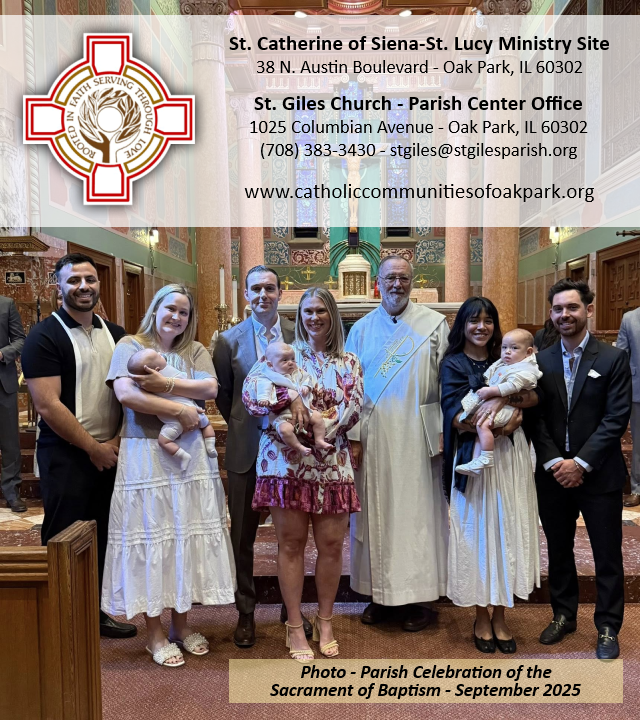 Thank you to all who continue to support our Unified Parish of St. Catherine of Siena-St. Lucy and St. Giles. It is appreciated and critical to maintain and operate all that we do. Those wishing to make their donations online through GiveCentral can find the link and easy-to-follow-instructions on the church websites. Contact Carol Coleman at the Parish Center, (708) 383-3430 ext. 419, with any questions or for assistance. We could not be here without you!