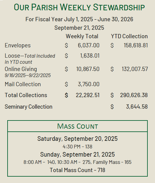 Confession and Mass Schedule - October 4-5, 2025 - 27th Sunday in Ordinary Time